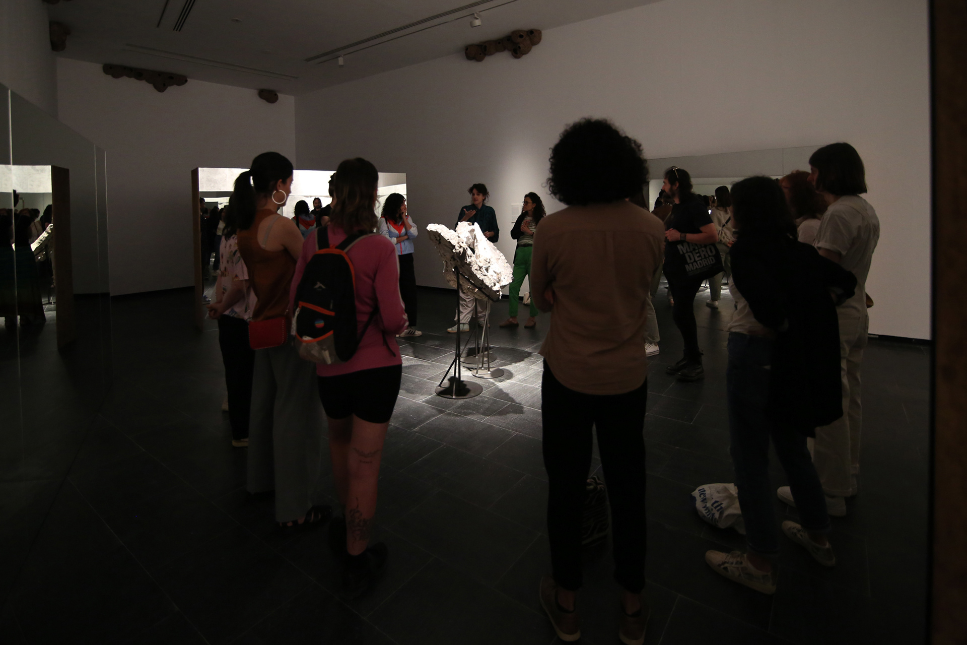 Realizado en el marco de Mediación para cinco pasamanos, un proyecto de colaboración entre AMECUM y el CA2M (Centro de Arte Dos de Mayo). Partiendo de una propuesta que comenzó con la exposición Juan Muñoz. En la Hora Violeta, repensamos la propia mediación en su contexto poniendo el cuerpo de la mediadora en el centro, entre tantos objetos y tantas palabras.