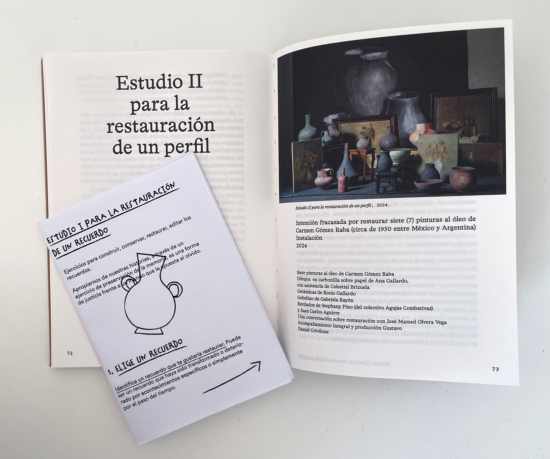 A partir de ejercicios para construir, conservar, restaurar, editar los recuerdos. Cada uno de estos ejercicios se vincula a una obra de la exposición de Asunción Molinos Gordo pero se centra en que las personas trabajen con un recuerdo propio que les gustaría restaurar. Un recuerdo que haya sido transformado o deteriorado por acontecimientos específicos o simplemente por el paso del tiempo.